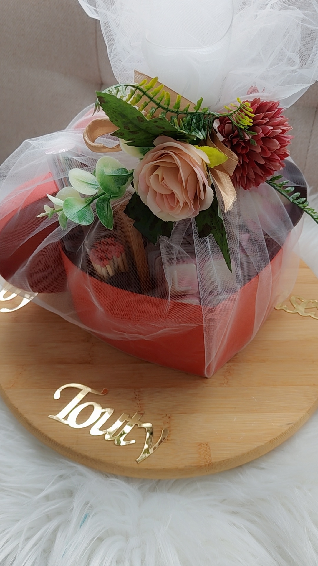 Le coffret Mia réunit beauté et élégance. Emballé dans un magnifique box en cœur rouge ou blanc, il est composé d’un brule parfum, d’une brume, d’un pack de fondants parfumés, d’une bougie parfumée et une fiole d’allumettes